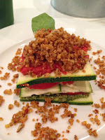 I went with the raw lasagna on my first visit. I was shocked by how flavorful the lasagna was. The "pasta" was zucchini slices, the "ricotta" was a cashew blend and fresh tomatoes and raw marinara gave it a burst of flavor between the layers of zucchini. It was topped with a walnut "sausage". I would definitely order this again. I washed it down with a wheat grass lemonade which had quite the earthy flavor which was drinkable, but I had to remind myself that it was good for me to be able to finish the last few sips. I noticed they had some vegan cupcakes and brownies available too.